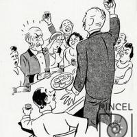 Escena de don Quijote. "Absit", dijo el médico: Toda hartanza es mala; pero, la de perdices, malísima"